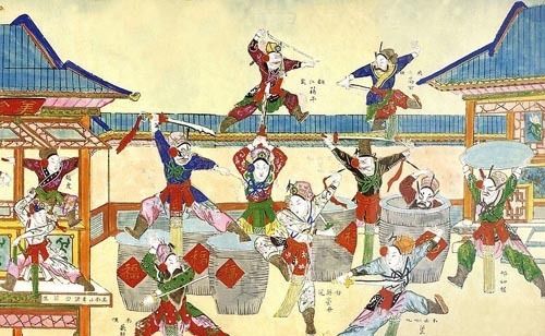 九月九日那天,桓景带着全村老小登上附近的一座山。他把茱萸叶分给大家,又把菊花酒倒出来,让每人喝一口,让瘟魔不敢近前。安排妥当后,他就带着青龙剑回到村中,等着斩杀瘟魔。